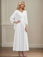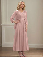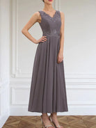 The Danielle™ Dress combines classic sophistication with delicate embellishments. Crafted from flowing chiffon, its A-line silhouette and ankle-length hem flatter every figure. Detailed with sequins, lace appliqués, and subtle beading, this sleeveless dress features a V-neckline, V-back, built-in support, and a back zip for effortless elegance. Perfect for weddings, receptions, or any special occasion where you want to feel radiant and confident.