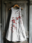 Vintage Red Blossom Linen Tank Dress