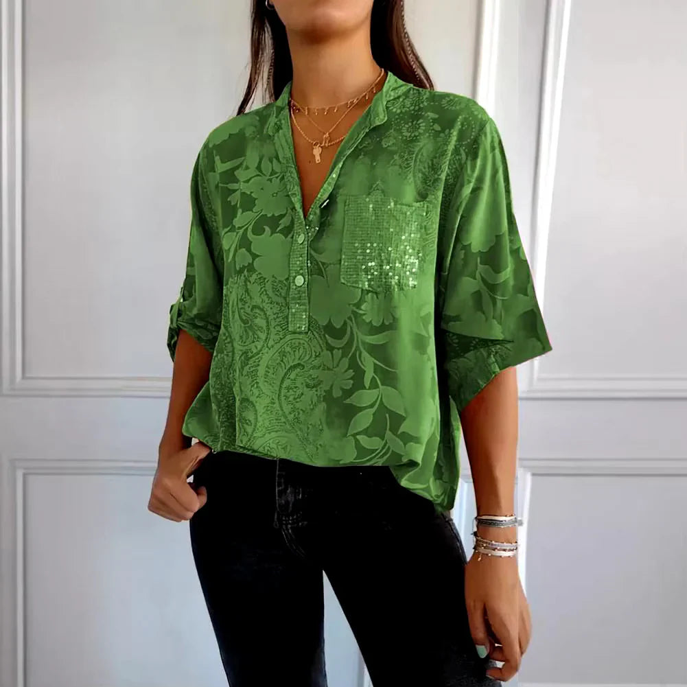Experience the perfect blend of comfort and sophistication with our Savannah™ Stylish Print V-neck Blouse. Its intricate print and versatile design make it an ideal choice for both casual outings and refined occasions. A wardrobe essential that radiates timeless style!