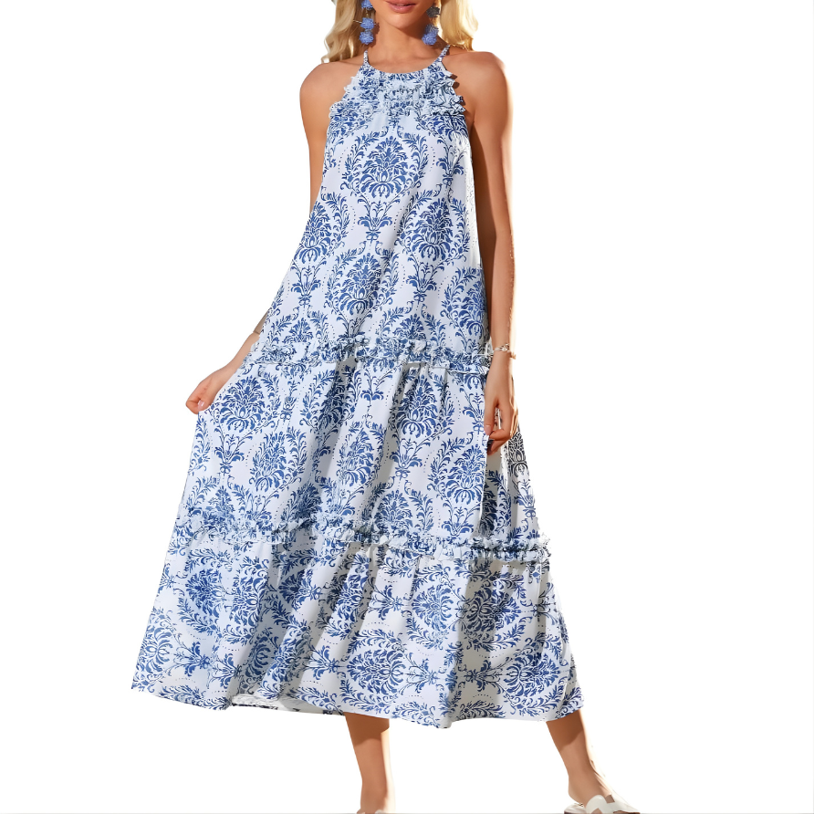 Designed for women who love relaxed, free-spirited style with a refined touch, the Loren™ Chic Boho Halter Tiered Maxi Dress blends movement, comfort, and feminine charm. With its flattering halter neckline and flowing tiered silhouette, this dress is perfect for warm days, beach escapes, and effortless summer styling.